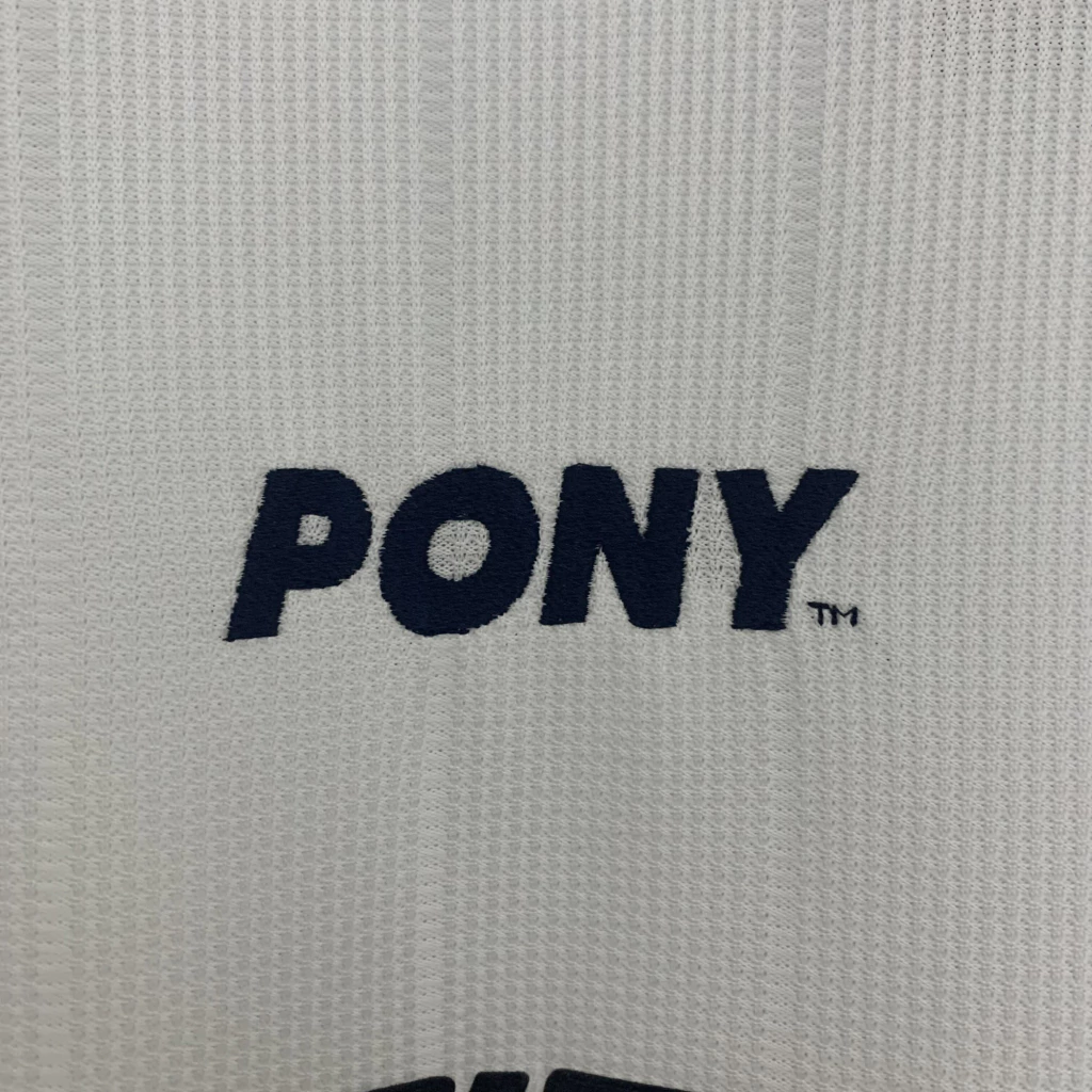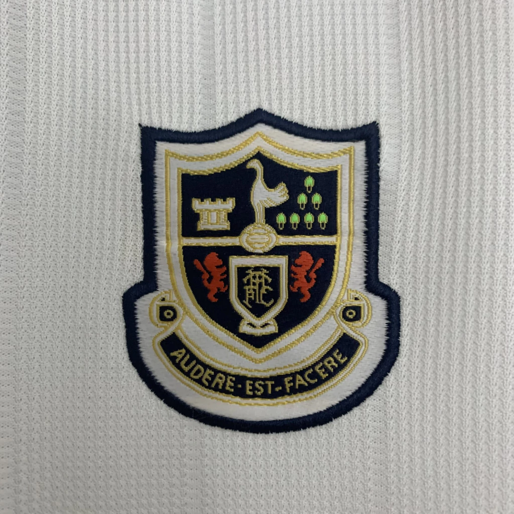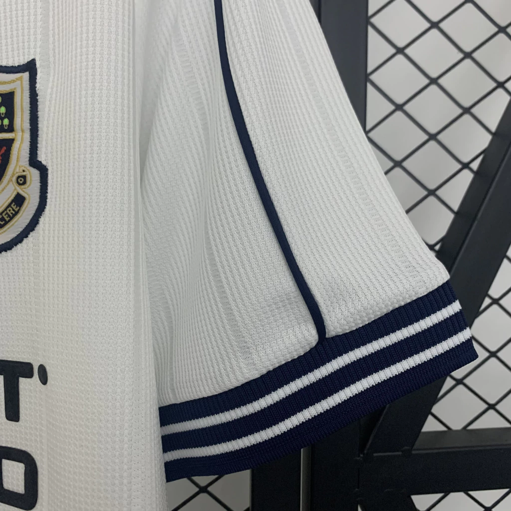 A camisa retrô é uma releitura fiel do modelo usado pelo Tottenham na temporada 97/99, quando o clube conquistou a Copa da Liga Inglesa e fez uma campanha memorável na Copa da UEFA. O branco predominante é um símbolo da pureza e da força do time, que sempre se destacou pela garra e determinação em campo.