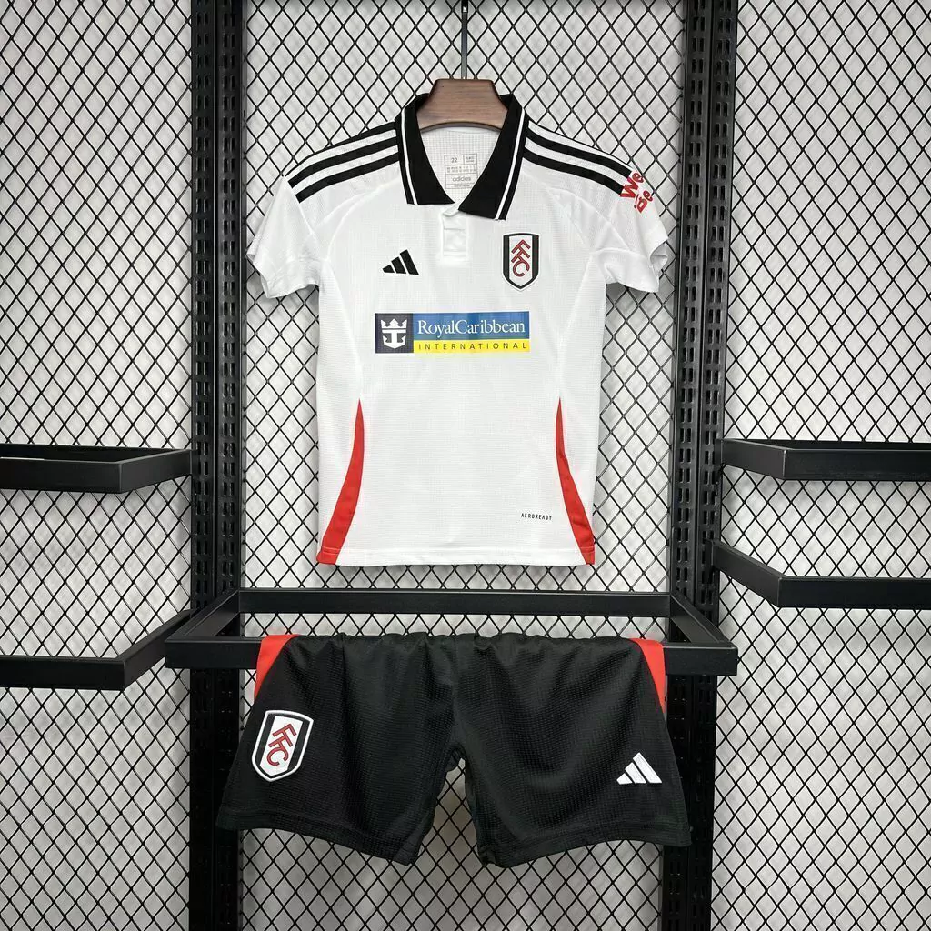 O novo modelo do kit infantil do Fulham I 24/25 foi inspirado na história do clube e em suas cores tradicionais. O branco representa a paz e a pureza, enquanto o preto simboliza a força e a determinação. Já o vermelho é uma homenagem ao brasão do clube, que possui um leão vermelho em seu escudo.